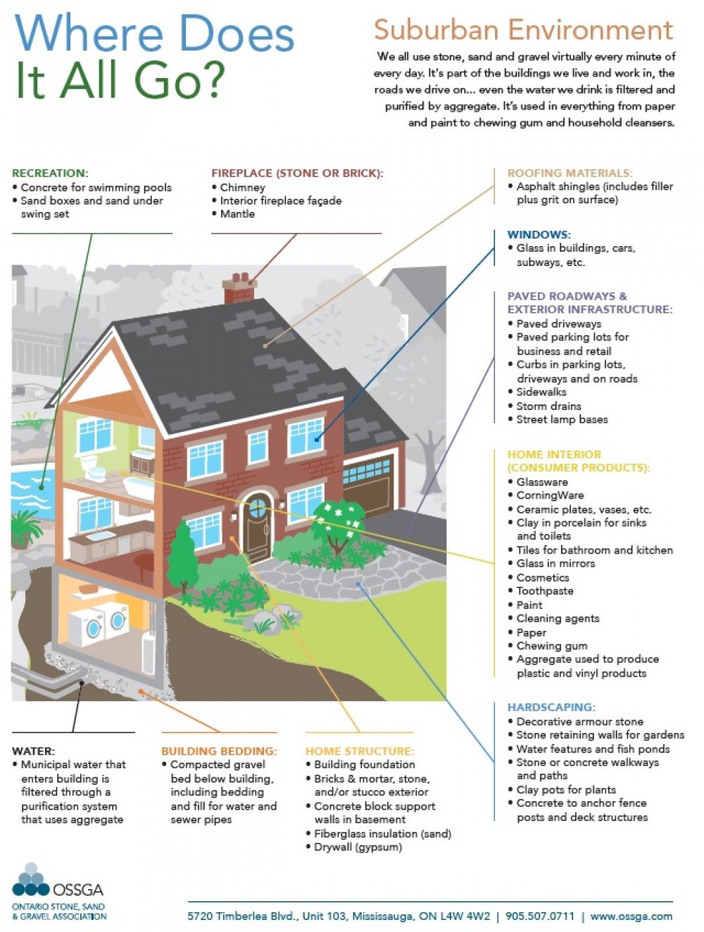 We’ll leave you with this fun infographic, courtesy of the Ontario Sand, Stone and Gravel Association, which summarizes all the amazing ways aggregates are used in a suburban environment.